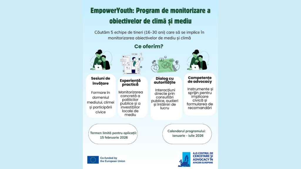 Completează formularul de înscriere până la 15 februarie 2026 și implică-te activ în protejarea mediului și în consolidarea proceselor democratice locale.