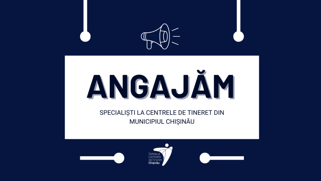 Centrul Municipal de Tineret Chișinău invită persoanele interesate să aplice pentru ocuparea mai multor funcții de specialist principal în cadrul rețelei de Centre de Tineret din municipiul Chișinău. Posturile sunt destinate persoanelor motivate să contribuie la dezvoltarea personală a tinerilor, la informarea acestora și la organizarea activităților educative și de timp liber.