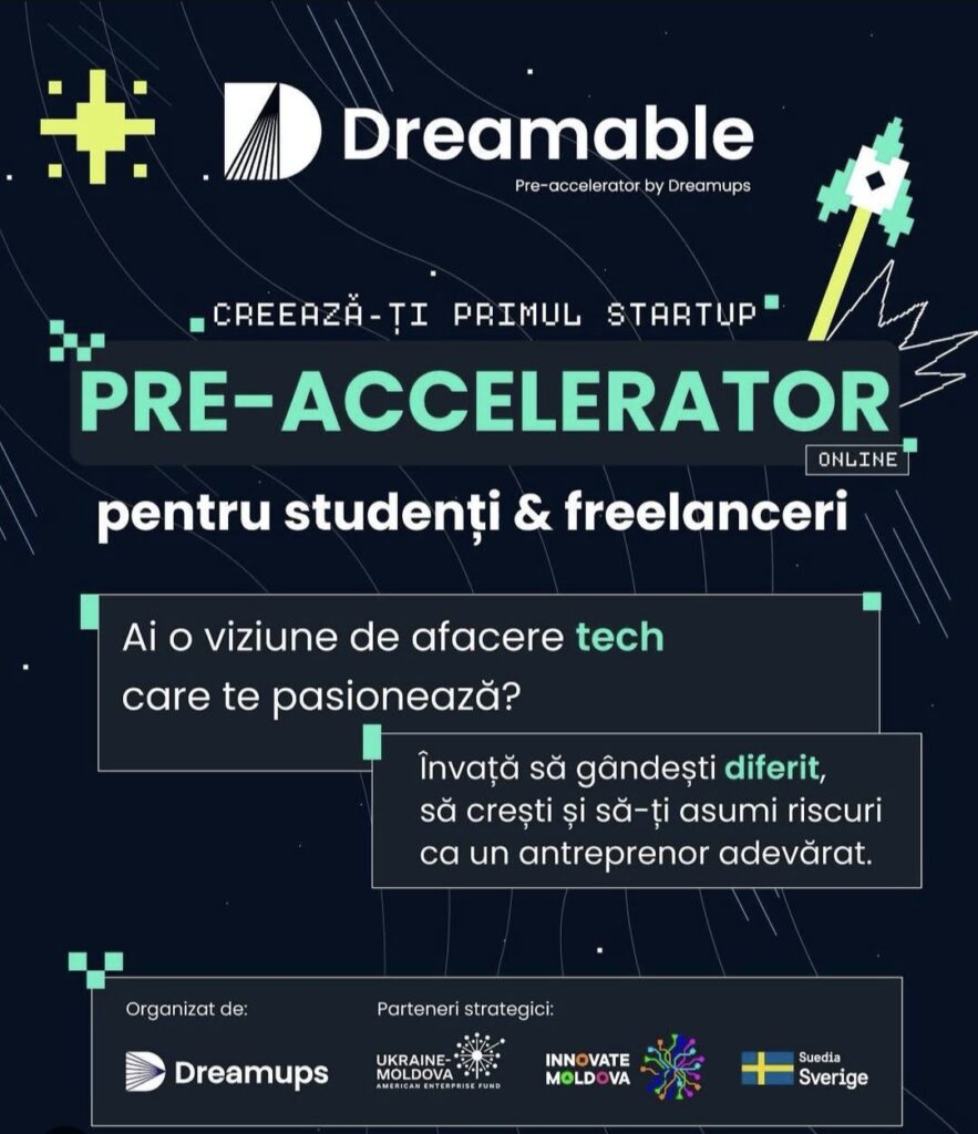 Dacă ai o idee de afacere și visezi să o transformi într-un startup real, dar nu știi de unde să începi, programul Dreamable Pre-Accelerator îți oferă exact sprijinul de care ai nevoie. În doar opt săptămâni, participând online, din orice colț al Moldovei, poți parcurge drumul de la simplă idee la fondator al unui startup.