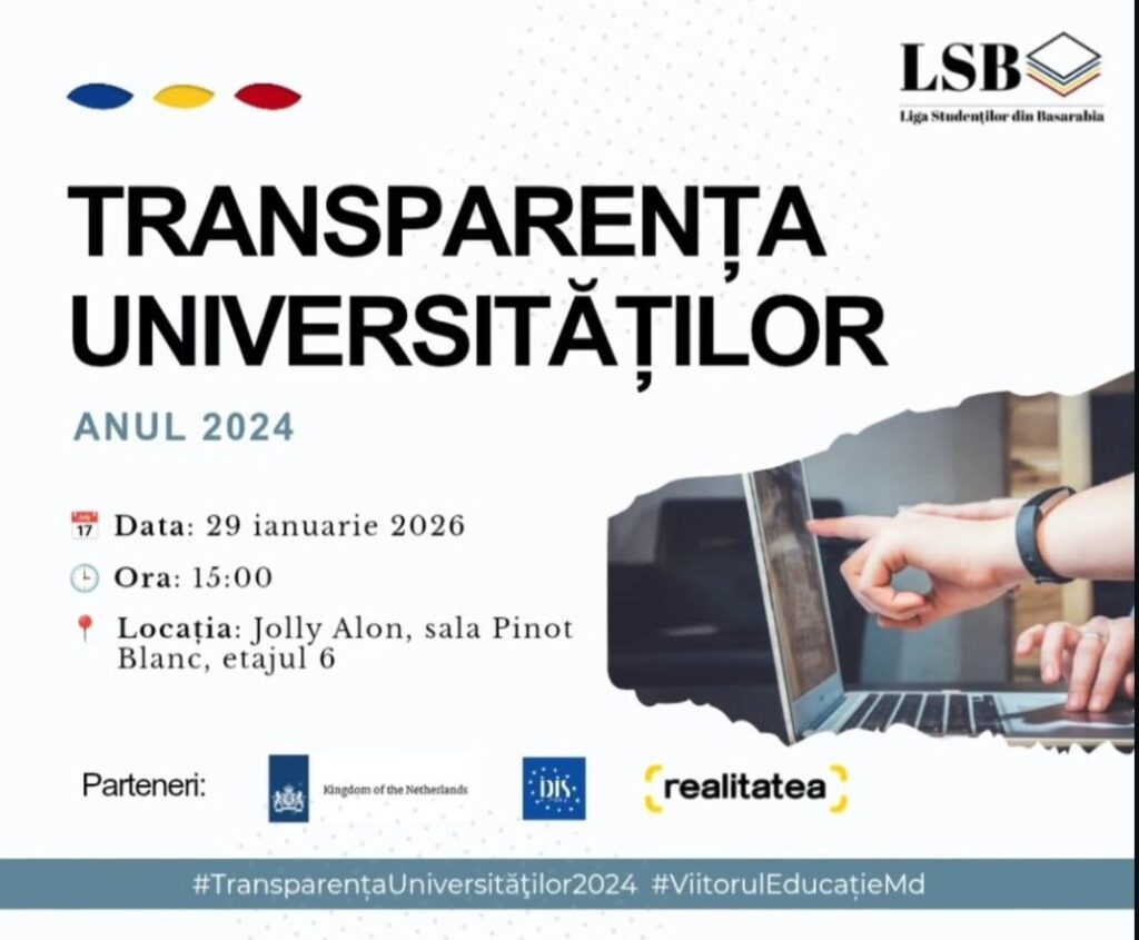 Liga Studenților din Basarabia a finalizat „Studiul privind transparența universitară 2024”. Această inițiativă analizează modul în care instituțiile de învățământ superior din Republica Moldova, finanțate de stat, comunică și își pun la dispoziție informațiile de interes public.