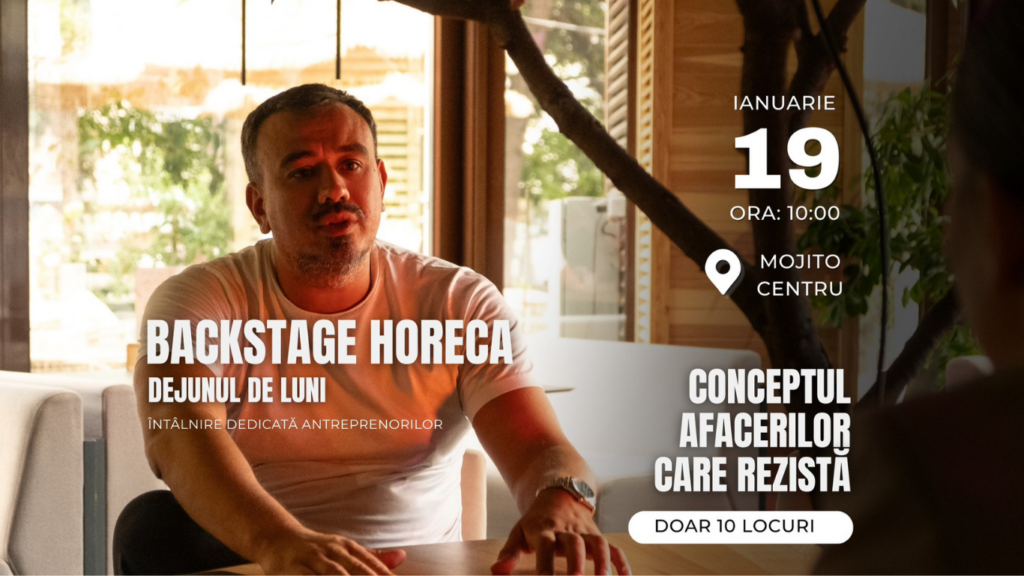 Luni, 19 ianuarie 2026, începând cu ora 10:00, va avea loc prima ediție a evenimentului „Backstage HoReCa – Dejunul de luni”. Întâlnirea se va desfășura la restaurantul Mojito, situat pe Bulevardul Ștefan cel Mare și Sfânt nr. 152, în Chișinău.