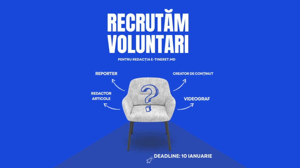 Redacția e-tineret.md lansează procesul de recrutare a voluntarilor pentru anul 2025 și invită tinerii interesați de jurnalism, media și comunicare digitală să se alăture echipei editoriale.