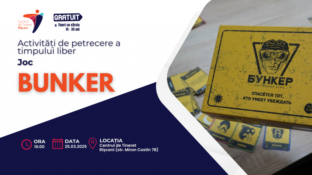 Participarea este gratuită pentru tinerii cu vârsta cuprinsă între 14 și 35 de ani!