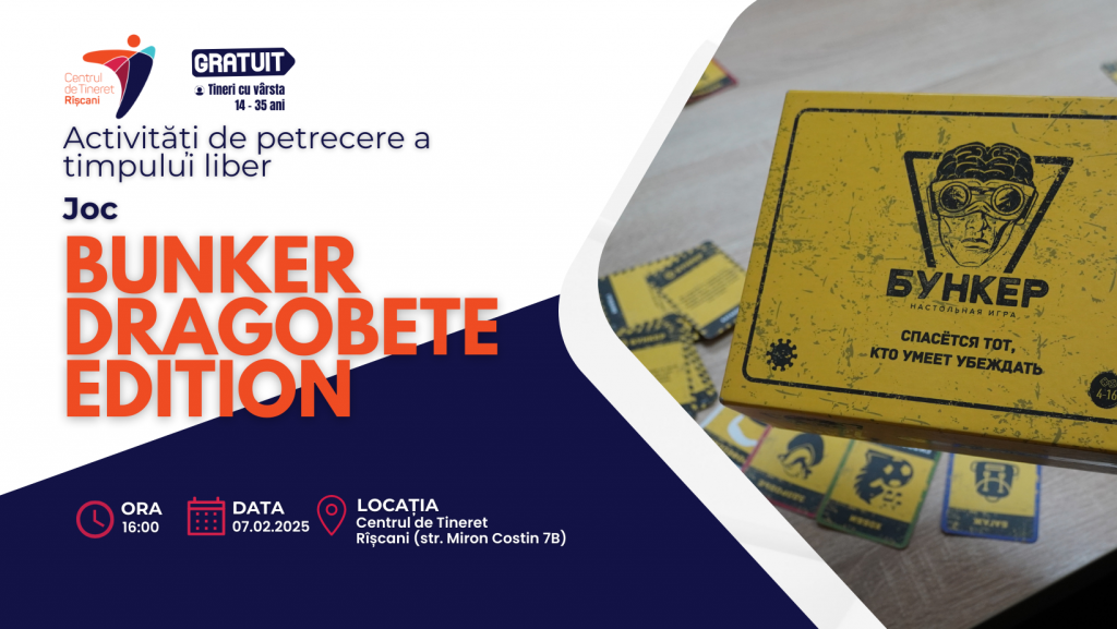 Participarea este gratuită pentru tinerii cu vârsta cuprinsă între 14 și 35 de ani!