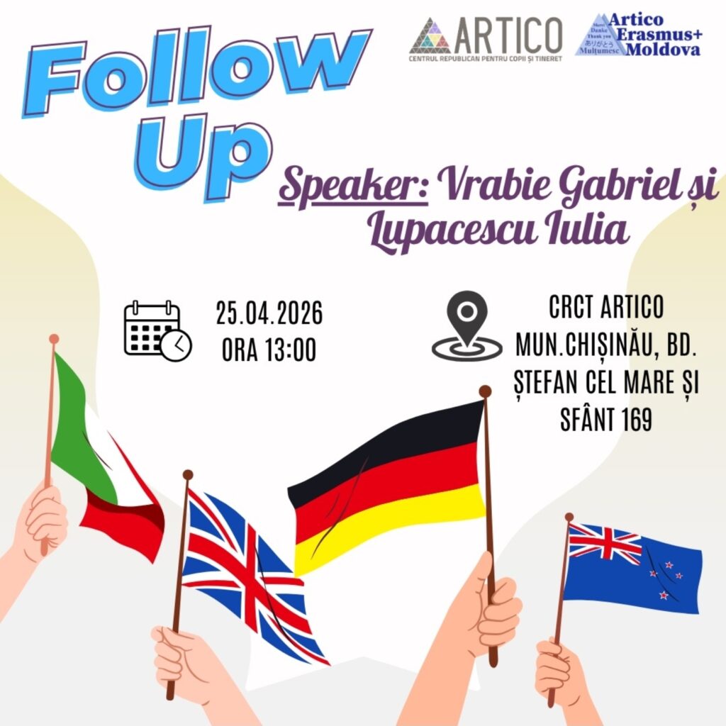 Centrul Republican pentru Copii și Tineret ARTICO, prin intermediul programului Erasmus+ Moldova, organizează un eveniment de tip „Follow Up” dedicat tinerilor dornici de explorare și dezvoltare personală.