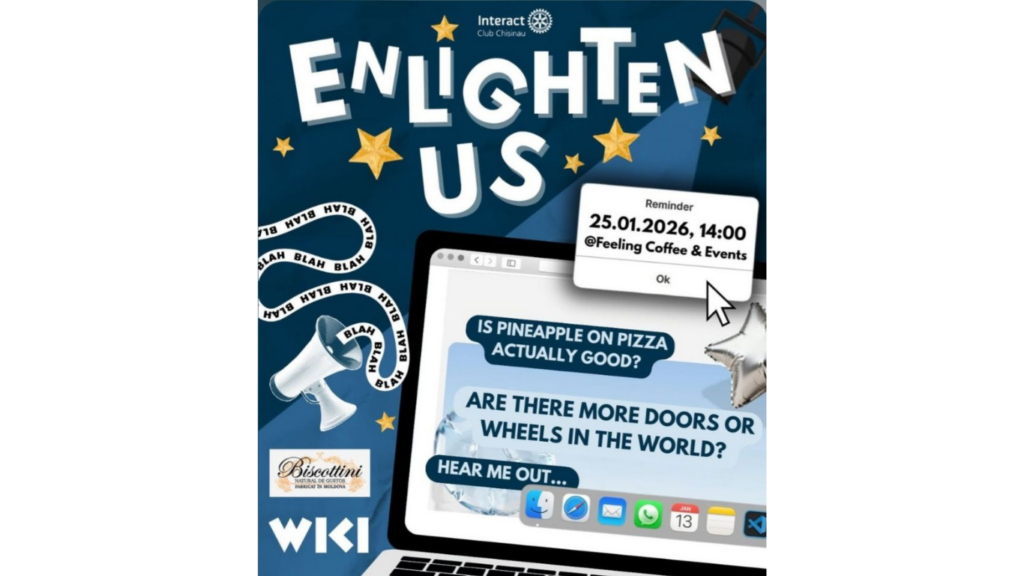 Organizația Interact Chișinău, o ramură locală a rețelei globale Rotary International, dedicată dezvoltării abilităților de leadership și lucrului în echipă al tinerilor, anunță cu entuziasm cea de-a doua ediție a evenimentului său emblematic, intitulat „Enlighten Us”. Acesta este o platformă deschisă, concepută pentru a facilita schimbul de idei noi și perspective originale într-un mediu lipsit de prejudecăți.