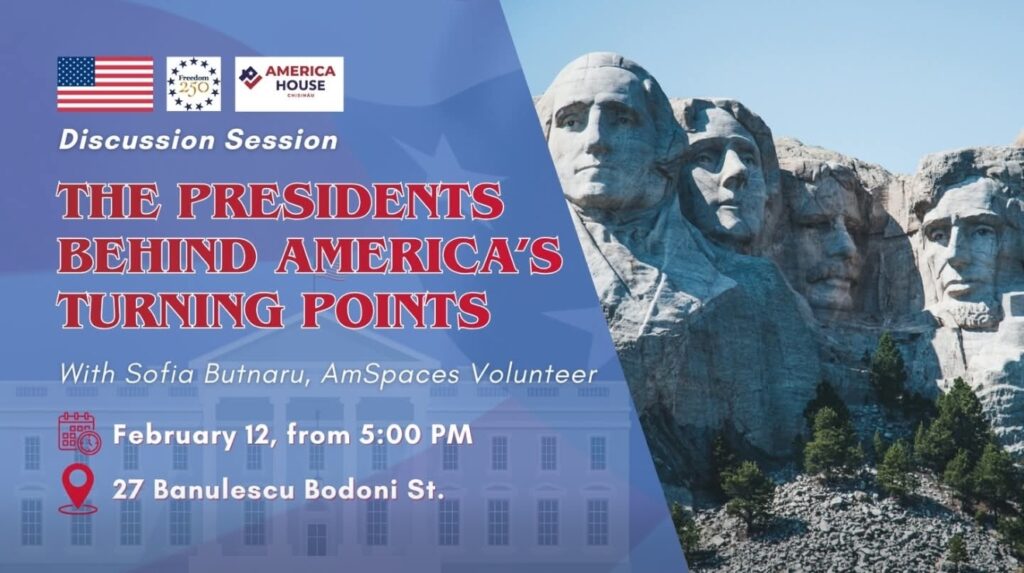 Pe data de 12 februarie 2026, la ora 17:00, America House Chișinău invită tinerii interesați de a afla particularități noi și captivante la un eveniment despre soluțiile implementate de către cei mai importanți Președinții ai Statelor Unite în momentele de criză din țară și cum aceștia au transformat viitorul Americii.