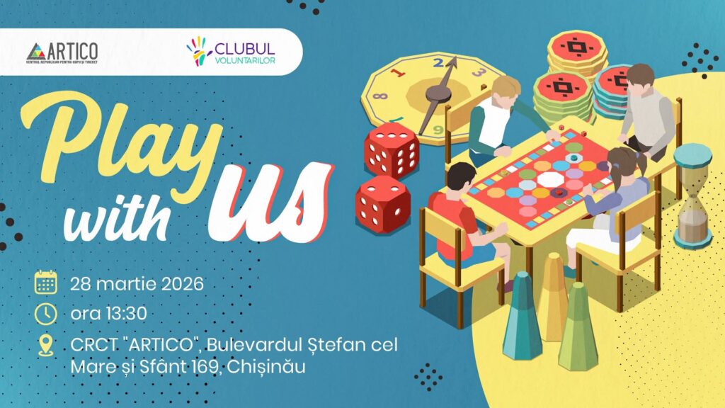 Pe data de 28 martie 2026, ora 13:30, la CRCT ARTICO, mun. Chișinău, Bd. Ștefan cel Mare și Sfânt 169, Clubul Voluntarilor ARTICO te invită la PLAY WITH US, o experiență interactivă de jocuri care combină distracția, strategia și socializarea.