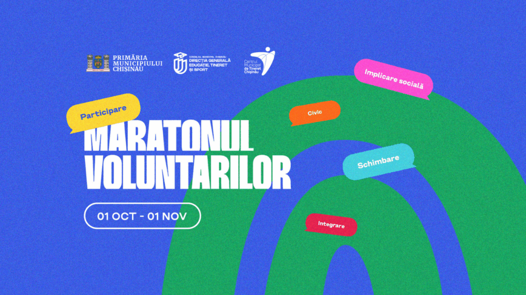 Кишиневский муниципальный молодежный центр приглашает молодых людей в возрасте от 14 до 35 лет принять участие в Марафоне волонтеров 2025, инициативе, направленной на активное участие в социальном, образовательном и экологическом развитии муниципия Кишинев. Не требуется никакого предыдущего опыта; главное — желание внести свой вклад и энтузиазм по отношению к сообществу.