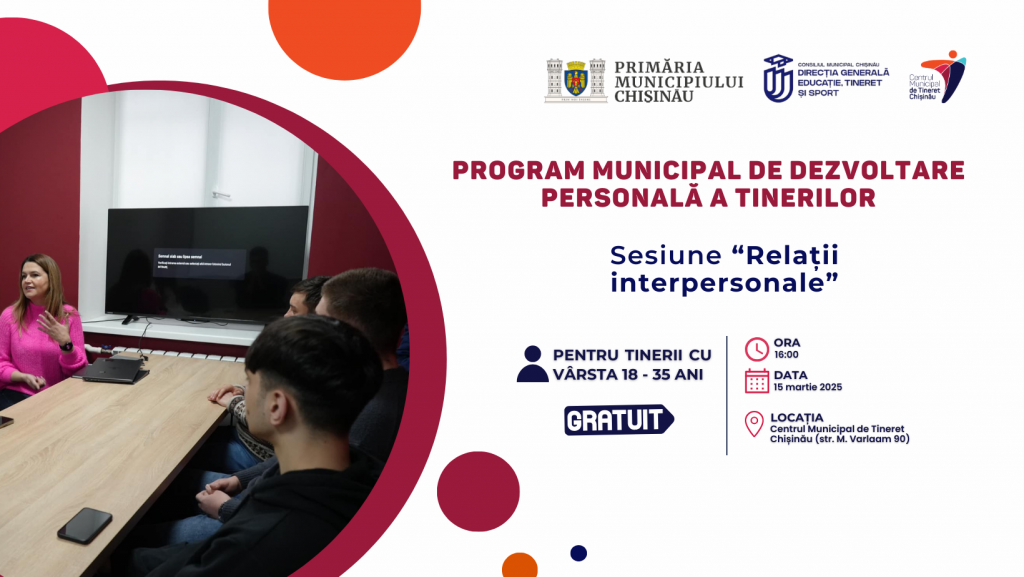 Занятие является частью Программы Развития Личности Молодежи, организованной Молодежным Центром Рышкановка. Участие бесплатное для молодых людей от 14 до 35 лет! Форма регистрации ЗДЕСЬ