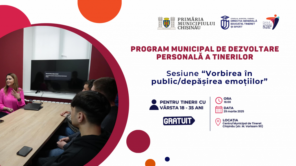 Занятие является частью Программы Развития Личности Молодежи, организованной Молодежным Центром Рышкановка. Участие бесплатное для молодых людей от 18 до 35 лет! Форма регистрации ЗДЕСЬ