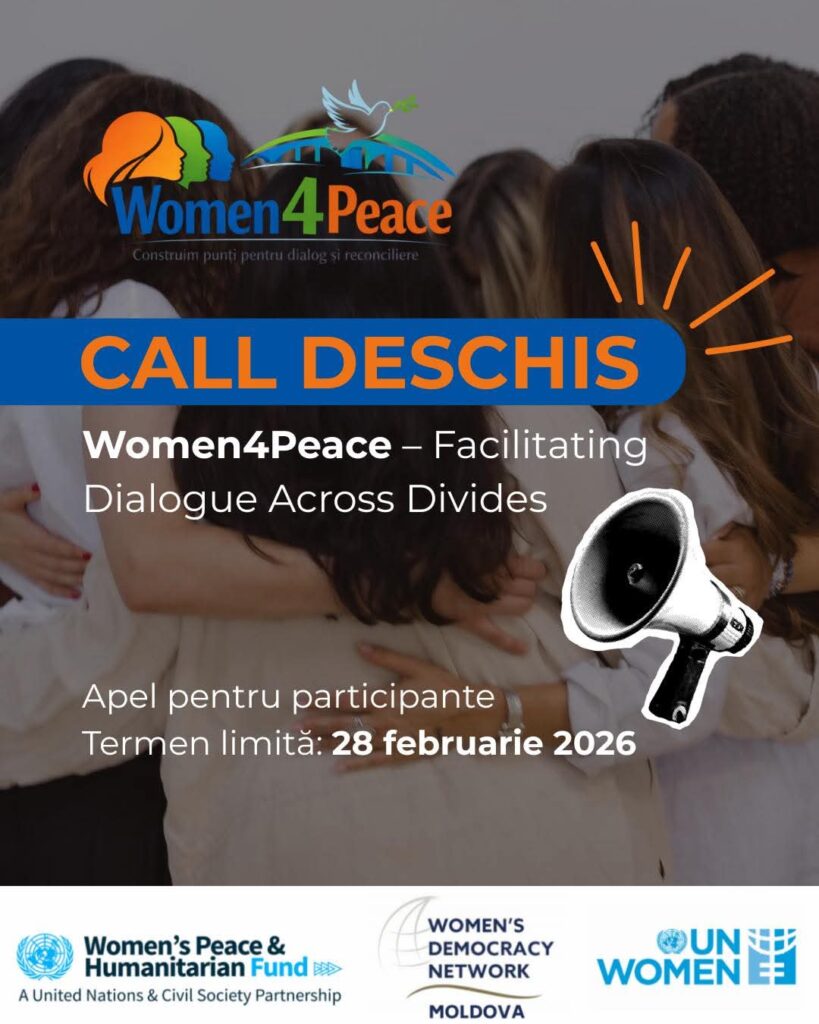 În contextul actual, implicarea femeilor în procesele de menținere a păcii și de mediere a conflictelor devine o prioritate esențială pentru stabilitatea socială. Proiectul Women4Peace – Facilitating Dialogue Across Divides lansează apelul de selecție pentru ediția din anul 2026, invitând femeile din întreaga țară să se alăture unei rețele dedicate reconstrucției încrederii și dialogului comunitar.